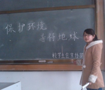 每年的4月22日都是一个重要的日子――“世界地球日”,这是一个世界性的环境保护运动的节日。为了让广大英才学子了解世界地球日,保护环境,善待地球,校学生会宣传部于4月22日在A楼1011召开了“保护环境,善待地球”座谈会,出席本次座谈会的有:校学生会宣传部部长吴文龙、副部长史璐璐,校学生会宣传部全体干事参加本次会议。史璐璐主持了会议。
