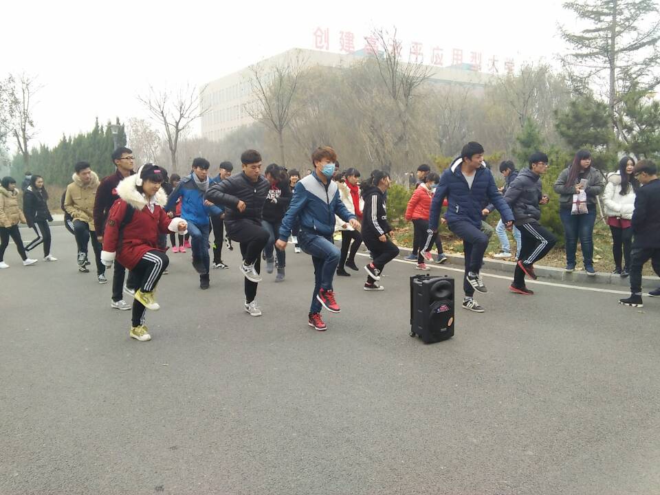 为了让同学们在这个寒冷的冬天释放出自己的激情、展示自己魅力。2015年12月1日11点30分,山东英才学院北校区舞灵舞街舞工作室在社长张项岗的带领下,全体社员于经济管理学院楼门口和餐厅北门开展“快闪”活动。全体社员热情高涨、澎湃激昂,在冷风中闪出炫目舞姿。