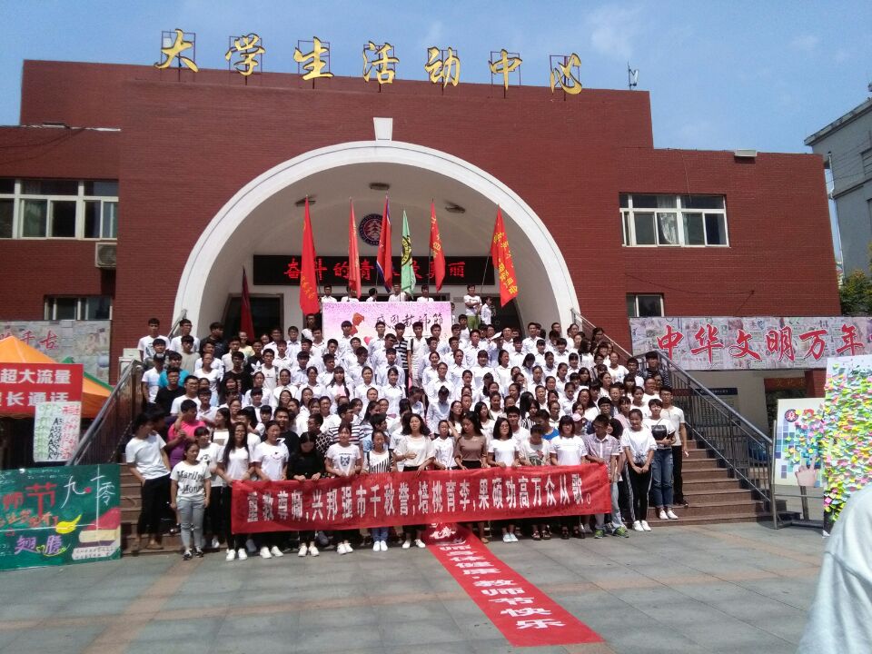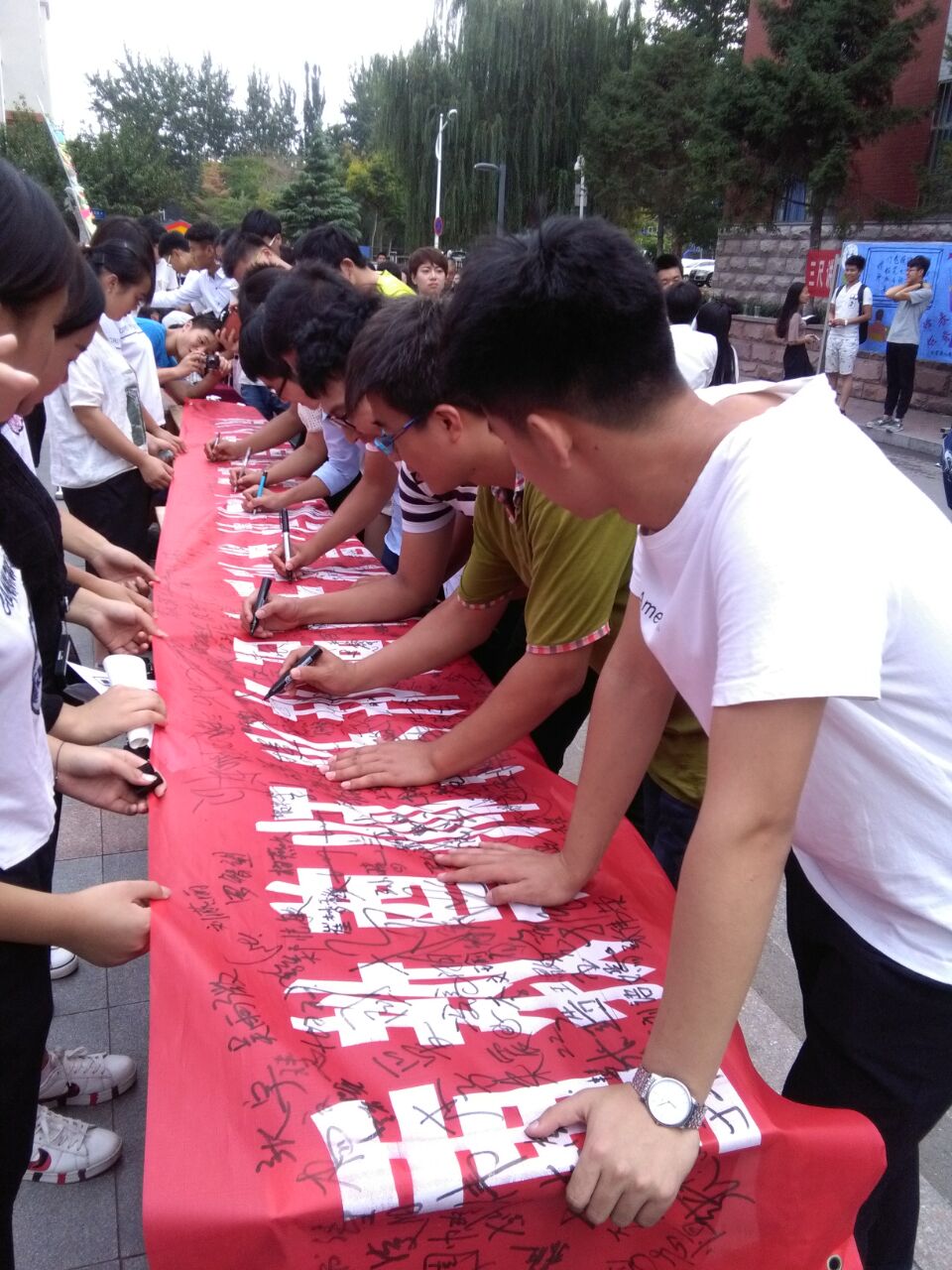 中午十一点,教师节感恩活动准时在大学生活动中心门前开展,由山东英才学院学生会各部门单位积极响应并参与,活动现场气氛也是异常活跃。在今天这个特殊的节日里,每一个人都在用自己的方式庆祝这这个节日,祝福着每一个付出青春与岁月的园丁。在这里,大家用最美的诗文来赞颂老师,感念师恩。在这里,大家用彩色的信纸写上最真挚的祝福来感念师恩。歌颂,写寄语,签名,宣誓,每一种方式都代表着每一位学生对教师最诚挚的祝福。在一片欢快的氛围之中,活动逐渐步入尾声,山东英才学院学生会各单位代表人也纷纷在那条满是祝福的横幅上签上了自己的名字来祝福老师。活动最后,参与了此次活动的全体工作人员在活动现场进行了合影留念,而这将更加有利于学生会各成员紧紧团结在一起为每一位师生服务。