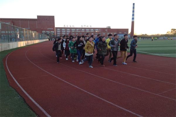 部员们在田径场跑步中