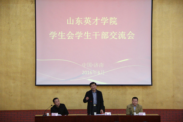 细风微醺,春意盎然。在这青春向上,阳光明媚的季节里,“2016年山东英才学院学生会学生干部交流会”于2016年3月15日中午在学术报告厅召开。学院张宗胜副院长,教育教学部龙新良副部长,王鹏飞副书记加了此次会议。