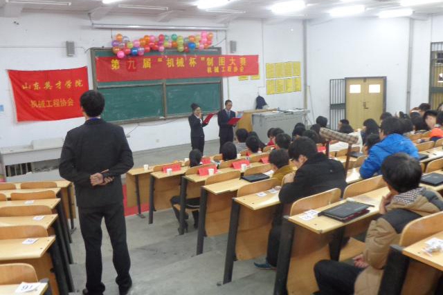 2014年12月13日,由山东英才学院社团联合会主办机械工程协会承办的第九届“机械杯”制图大赛于中午12点阶梯一教室正式开赛。参赛选手在教室门前集合完毕后,统一分发号码牌,然后在纪检礼仪的带领下,把通讯工具交到寄存处后,去桌角寻找对应自己号码牌的考号。在掌声中,济南数控模具科技研究所,英才学院社团联合会理事,各家兄弟社团负责人坐到嘉宾席。首先由机械工程协会上任会长李春平致开幕词表达了机械之路的魅力,社联主席刘敏,济南数控模具科技研究所李增红校长作了对本赛笔规制图大赛的重要期望和祝愿。最后,在现任机械工程协会的会长时堡磊宣布第九届“机械杯”制图大赛正式开赛声中,激烈的制图比赛开始了。大家争分夺秒的进行着对每一个零件图的勾勒,在笔规的驱动下,大家又耐心得做到精致,展现着机械学子对学习的一丝不苟,对工作的精益求精。