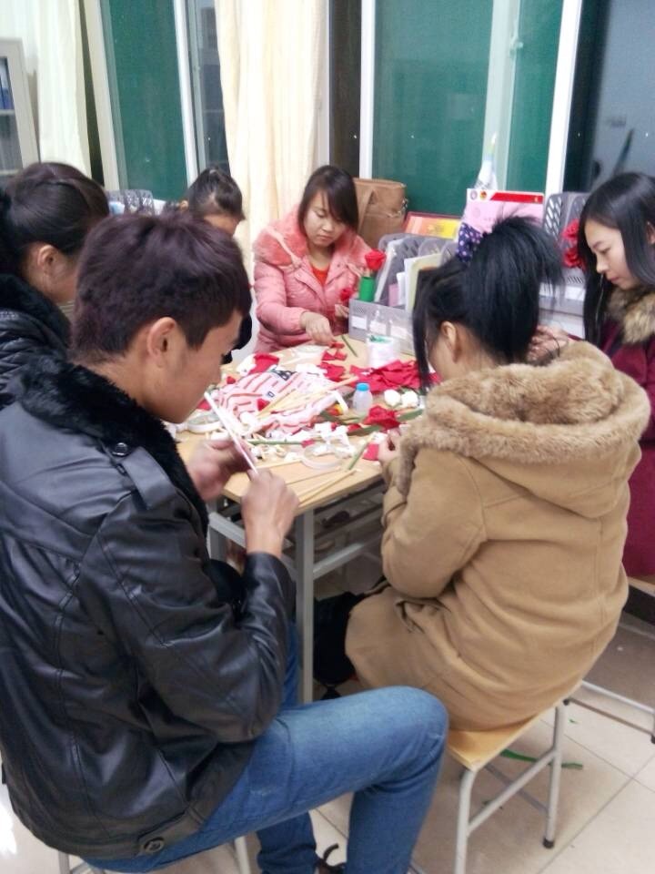 在制作开始,由权益部成员设计构思贺卡模型,并设计纸玫瑰送给各位老师及领导。由权益成员毛燕东、陈海旭、卢亚负责制作贺卡必需品的购买,并分工给各部门成员合作制作纸玫瑰。生活部成员负责裁剪卡片,秘书处成员负责制作纸玫瑰枝干。活动最后,校学生会秘书长权成及秘书处处长黄奇也来参加纸玫瑰制作活动,使现场气氛更加愉悦、欢快。