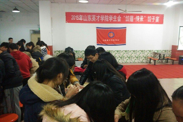 佳节渐近,饺香扑鼻。2015年12月25日山东英才学院学生会于梅园餐厅成功举办了一年一度的饺子宴。虽然冬至已过,但却即将迎来新的一年。此次活动不仅为了传承文化,也为了促进学生会内部的交流,提升成员们的凝聚力。出席此次饺子宴的嘉宾有:校学生会主席王永浩,副秘书处长王倩琳,校学生会副主席葛宪柱、李伟、郑蓓莉以及各二级学院主席、副主席。山东英才学生会全体成员参加了此次活动。来自校学生会纪检部和文艺部的四名15级部员主持了这场温馨的宴会。