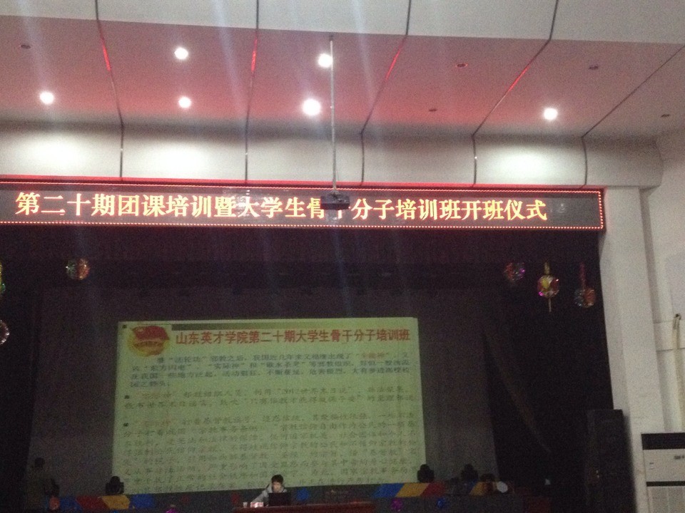 为培养优秀大学生骨干分子,增强大学生的文化涵养,落实大学生骨干分子了解自身处于生活、工作中的重要作用。共青团山东英才学院委员会于2013年12月5日17时30分在大学生活动中心举办第二十期团课培训暨大学生骨干分子培训课。此次培训由副院长李崇银教授担任主讲人,校团委书记龙新良、副书记王东生以及团委老师出席培训,校学生会纪检部积极参加了此次培训课。