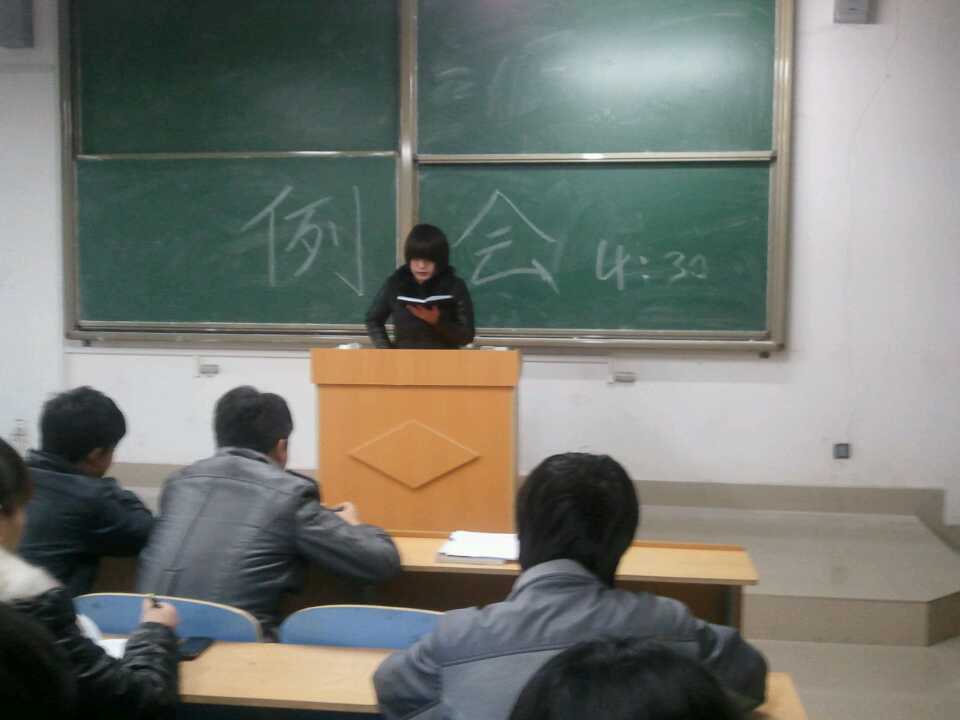 例会前期,部员们早早来到了教室,谈论起这段时间来的工作与学习,仇苏琪对大家的学习非常关心,她强调学习是大家的首要任务,千万不要懈怠。例会正式开始,依旧由部员模拟主持会议,切实体会作为部门领导者的辛苦,且从中锻炼当众说话的能力。两位部员模拟主持后,仇苏琪做出相应的补充和更正,重点强调了宣传部员应掌握ps技术、大家工作积极性不高等问题。而后部员们像往常一样交流了读书心得,分享哲理故事。在和谐的氛围中中,例会悄然结束。