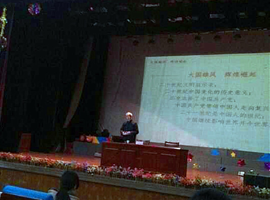培训开始,刘孝贤教授以多次鞠躬作为开场,展开了以“大国雄风,辉煌崛起”为主题的讲座。刘教授从二十世纪文明启示录、中国社会变革、历史选择、和谐社会等四个方面阐述了中国发展的进程,悉数革命先驱者不畏死亡,追求“大同社会”的脚步,深刻解析了中国历史上的重大事件,指出作为大学生应当认真负责,恪尽职守,履行认真学习的责任,崇尚科学知识,为祖国发展贡献力量。刘教授在清扬的背景音乐下朗诵《中华世纪坛赋》为了加深学生对本次讲座的思考,刘教授通过解答学生疑问的方式进一步加强了与同学之间的沟通,了解了学生们的想法。最后讲座在同学的热烈掌声中结束。