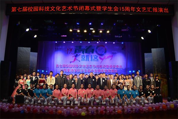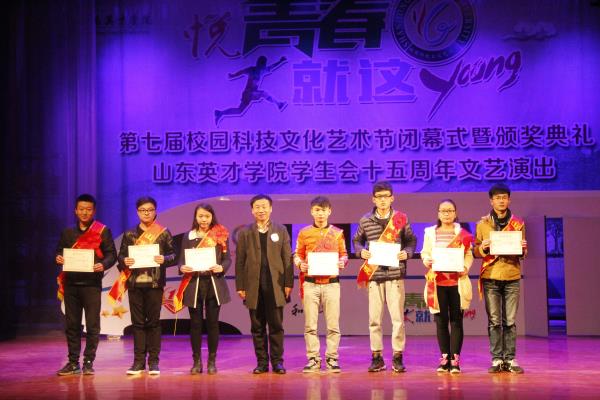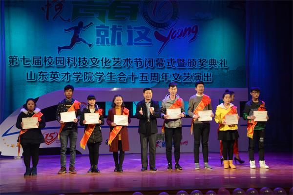 在恰逢2015年也是山东英才学院学生会自成立以来走过的第15个年头之际。2015年12月14日18点,山东英才学院第七届校园科技文化艺术节闭幕式暨学生会15周年文艺汇报演出在大学生活动中心圆满举行。本次晚会,特邀学院副院长李崇银教授,党委副书记、副院长张宗盛教授,副院长周忠教授出席本场晚会,各二级学院行政副院长、基层团委书记、老师以及来自全校1000余名学生代表也积极热情地来到晚会现场。