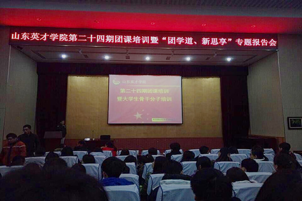 为提高校学生会学生干部综合素质,校学生会骨干成员积极参与学院于2015年12月16日下午在学术报告厅举行的“山东英才学院第二十四期团课培训”。