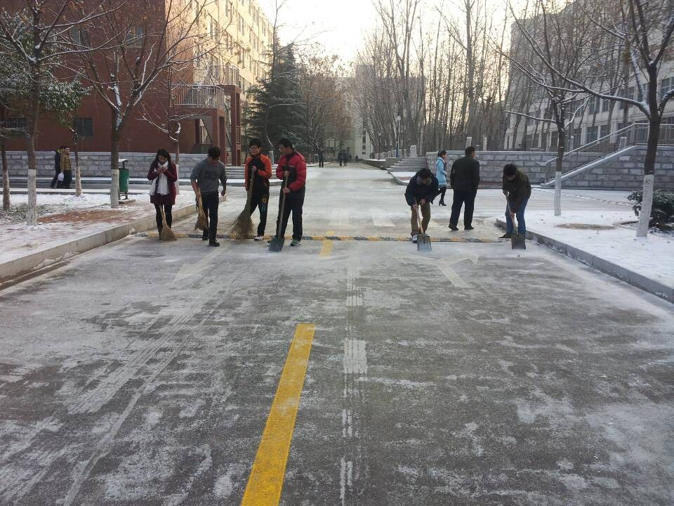 2013年12月18日 清晨,一层白雪覆盖了整个校园,在给同学带来欢乐的同时也给同学们带来了交通不便和安全隐患。为保障广大师生的出行安全,培养校学生会生活部成员乐于奉献的精神。校学生会生活部成员积极参加了于英才南校综教楼北的主要干道展开的除雪活动。校学生会主席团成员、各部部长参与了活动。此次活动由刘超主席主持。