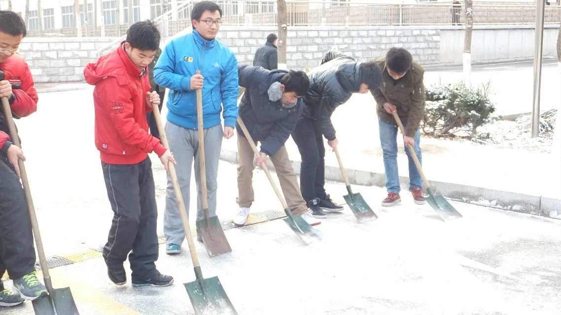 清晨的校园,伴随着阵阵寒风迎面而来,校学生会的成员们手拿着铁锹和扫帚来到了综教北楼前,开始清扫路面的积雪。下过雪的地面又湿又滑,虽然寒风刺骨,但是仍然没有阻挡校学生会成员们服务全校师生的决心;虽然冻得手脚发麻,好几次险些滑倒,但是校学生会成员们充分发扬了“不怕苦、不怕累”的雷锋精神,继续坚守在冬日的清晨,与无情的雪神做英勇斗争,为广大师生的安全出行贡献自己的正能量,路过的师生们见到此情此景也对校学生会成员报以善意的微笑,感谢他们的辛勤付出。随着时间慢慢流逝,一层一层的积雪被扫到路边,雪花融化后的薄冰也被铲碎,经过近三个小时的努力,大家终于把综教楼北楼前的主干道、学术报告厅前、田径场东侧干道的积雪清扫干净,美丽的校园恢复了原有的整洁。至此,此次清扫积雪活动在师生们的赞扬声中圆满结束。