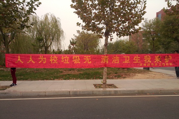 参与的人员由社长王雪松带领的英嘉年华公益社团全体成员以及山东英才学院北校区全体师生。在活动现场同学们都踊跃参加。校园是我们学习工作的重要场所,校园环境卫生的好坏直接影响到老师的工作和同学们的学习以及生活。同时,校园环境卫生是一个学校文明程度的重要标志,也是学校对外形象好坏的直观影响的窗口,所以我们要爱护环境清洁卫生。