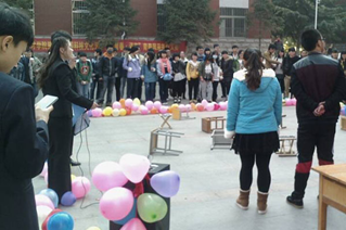 由山东英才学院成功之路英语社团主办的第二届温情书大赛活动现场。主持人郑雪松李世成宣读“有一种情感如生生不息的泉涌自然流露,它是用心触动笔尖,展开积淀已久的灵感。有一种炽热如小小的调色盘,它交集了我们的酸甜苦辣,用想象来创造人性的光辉。青春是言语繁盛生长的季节。我们把梦洋溢在文字的摇篮里。在这个浮华的年代,一篇美文、一纸素笺则会给喧嚣的心是带来一丝安宁”。由孙锐现场美文朗诵《你不懂我 我不怪你》。分别有两对情侣孙红丹、刘文浩等参加这个情侣游戏。名字叫做“你是我的眼”。现场非常活跃 参赛者积极投入活动当中,大家非常开心。