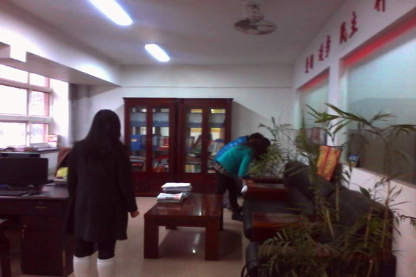新学期伊始,为营造一个温馨舒适的学习、工作、生活环境,使校学生会能以良好的精神状态迎接“雷锋月”的到来。在校学生会主席团的统一安排下,在校学生会记者团部长吴文龙的认真组织下,校学生会记者团派出5名部员于 2014年2月27日 对南校区综合楼北楼团委办公室及周边区域进行彻底清洁。