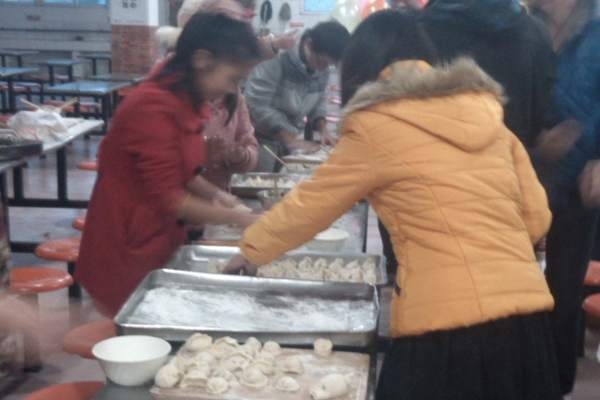 在下午三点半由IE交际协会会长做了简单地讲话后宣布了包水饺活动正式开始,同学们早早就来到餐厅准备大显身手了,在开始后有的擀皮有的弄馅,大家其乐融融的,不一会儿什么三角形、圆形的都出来了,边包饺子边听着音乐。学生们热情高涨,纷纷动手帮忙,男生女生齐上阵,摞起袖子动手包饺子。时间过得飞快不知不觉一个多小时就过去了,此时饺子也已经包好了,之后在食堂厨师的帮助下,好几盘热气腾腾的饺子出锅了,很快被同学们抢食一空。接着又出来了许多盘,虽然包的样子不怎么好看但是同学们都吃的津津有味的。