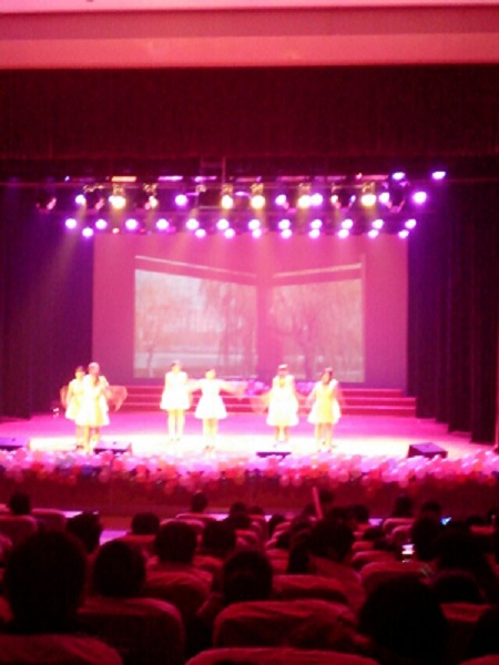 在大家精心的准备下,社团联合会“追梦”文艺晚会正式拉开帷幕。首先,由主持人冯硕、周易、王朔与孟凡新的一段简短的开场白将全场引入晚会的氛围中。接着,一段动感的《B-BOX》引起台下一阵热烈的掌声,气氛瞬间沸腾起来。然后,《歌曲串烧》、舞蹈《漾吾青春》与相声《如此有才》相继登场,他们轮番上阵,尽情的挥洒青春的激情与活力。然而,最为突出的还是由舞灵舞街舞社带来的街舞表演,劲爆的《鬼步》、《机械舞》与火辣的《爵士舞》给观众带来一种强烈的视觉冲击,一阵阵掌声震撼全场,将晚会的气氛推入高潮。最后,不可思议的魔术表演,美轮美奂的《惊鸿舞》,滑稽搞笑的《双簧》以及霸气十足的双节棍表演分别以不同的方式给大家带来深刻的印象。晚会的最后,由主席王昌进上台致词,并且有请嘉宾与演员进行合影留念。