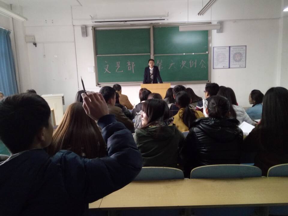 至此,本次活动在负责人的谈心声中拉下帷幕。相信通过本次例会,学生会文艺部将温故知新,屡创新高,更加的繁荣富强。