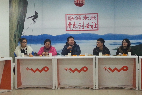 2014年1月6日下午6时,团委在大学生创业服务中心组织召开茶话会,本次茶话会的口号是“凝心聚力,为英才共青团事业贡献青春力量”,出席本次茶话会的有团委龙新良书记、毕璇老师、王建洲老师、周子馨老师、寻芬老师以及各团委组织人员。