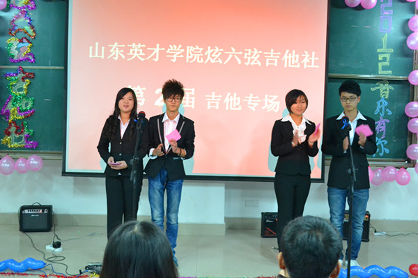 11月24日,北校区炫六炫吉他社“2012,音乐有你”专场汇演在北校区教学楼B-100多媒体教室正式举行。参加本次晚会的嘉宾有北校区社团联合会主席赵维海、北校区青年志愿者协会会长冷建涛、副会长吴秋霞、社团联合会直属部门部长、北校区各家社团社长及部长等。