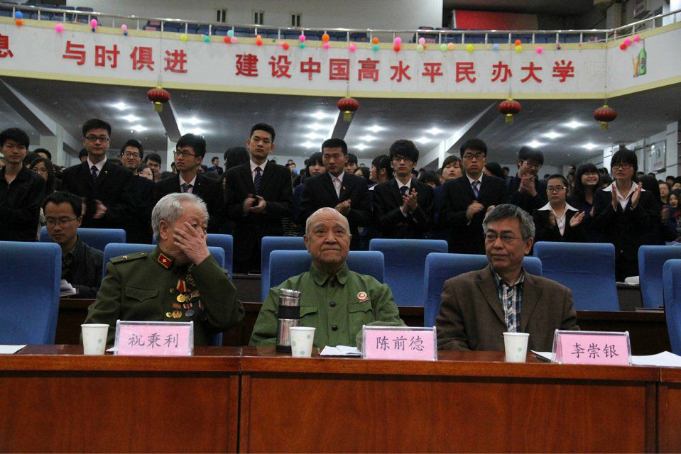 培训伊始,校团委副书记王鹏飞向大家介绍了与会领导及邀请嘉宾。接着,济南军区政委向与会人员介绍两位老首长的光荣事迹,并送上“英才辈出”四个字赠予英才学子,对所有同学寄予了深厚的期望。随后,祝政委围绕“与信仰对话,回顾抗美援朝”这一专题,用自己的亲身体会为大家深刻阐述了革命时期伟大祖国的光辉历史。虽然是简短的介绍,却让台下的听者肃然起敬,老首长有着六七十年的戎马生涯,经历过枪林弹雨的考验,对抗美援朝战争光辉历史有更深刻的理解。并用自己的亲身感受教导大家要坚定马列主义、“中国特色社会主义理论体系”,坚定建设有中国特色的社会主义信仰。祝政委在一个标准的军人礼中结束了自己的此次关于信仰的报告,面带笑容从容淡定的回到台下。祝政委的精彩报告,赢得了台下观众的阵阵热烈掌声。伴随着欢呼声,陈前德主任迈着缓慢的步伐走上台前。陈主任带领大家追忆了“与信仰对话,中国抗日战争史”,他告诉大家要坚持“三信”,即对中国特色社会主义的道路自信、理论自信、制度自信,用他那军人所特有的声音向大家传递着信仰的力量,传递着新中国取得胜利后的欢愉,也向广大团员青年传播着崇高的爱国主义精神,赢得了大家极高的尊敬。整场报告会高潮不断,呐喊不断,精彩纷呈。本次专题报告在经久不断的掌声中告罄。