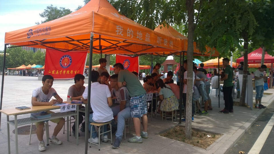 “会当凌绝顶,一览众山小,齐鲁大地,英才入英才”,2014年08月12日,山东英才学院北校区校学生会纳新活动在同学们的期待中正式拉开帷幕。校学生会是我院独具特色,功绩显著的学生组织,不仅带领同学们在各种学院大型活动中取得了优秀的成绩,也为学员同学们提供了丰富多彩的课余时间拓展活动。为了吸收新鲜血液,壮大和发展校学生会,我们面向2014级同学开展了此次纳新活动。参与此次纳新活动的有北校区校学生会副主席黄奇、程东、翟永振以及校学生会九大部门负责纳新的成员,本次纳新由三位主席共同主持。