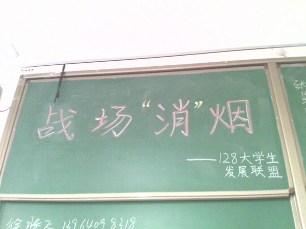 活动前,128大学生发展联盟的社员们积极的收集烟草的相关知识,通过手机和网络中人际关系来了解校内人员对吸烟的了解程度和所持态度。活动中,社员们将资料整理成文,发给参与本次活动的每一个人,并促使他们写下自己的“禁烟”活动愿望。