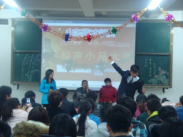 为了让同学们“飞扬青春,演绎梦想”,2013年11月21日下午4点40分,由山东英才学院北校区共青团委员会主办,社团联合会承办的第五届科技文化艺术节相声小品大赛决赛在教学楼B楼100火热开赛。本次大赛非常有幸邀请到经济管理学院基层团委书记王鹏飞和校学生会主席权成等担任此次比赛的评委嘉宾。本次比赛秉承“青春 梦想”的理念,以放飞梦想来展示英才的魅力。
