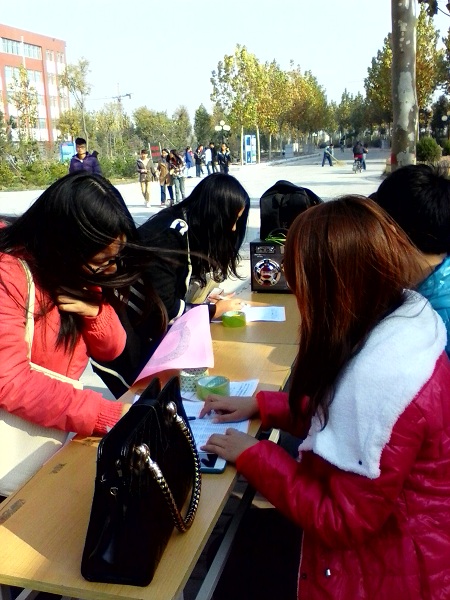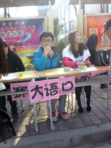 2013年11月14日,由英语俱乐部主办,社团联合会承办的英语口语大赛报名工作在北校区做好了准备。大赛面向北校区全体同学,由社长白娜组织,其他部员参与配合与宣传。