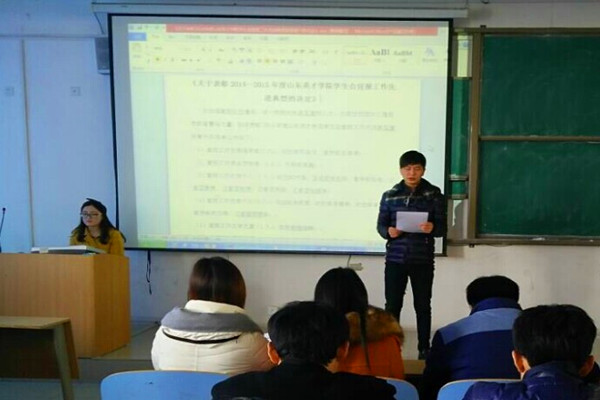 首先,山东英才学院学生会记者团部长吴文龙作为宣报总负责人,对2014年度山东英才学院学生会宣报工作作了总结。吴文龙部长总结了四点:一、注重自身建设,规范宣报工作。校学生会宣报成员始终坚持自我充电,认真对待每份宣报工作;二、宣传方式新颖,迅速高效全面。在我校第六届校园科技文化艺术节中,宣报成员采用多种途径,活用新媒体,宣传达到了预期效果;三、宣传亮点突出,舆论范围渐广。宣报成员对各项活动分工明确,寻找亮点,无论前期,还是中期,甚至后期宣传,都取得了优异的成绩;四、强化技能培训,提高骨干素质。校学生会组织了多次大型宣报技能培训,给广大宣报工作者提供了学习交流的机会,提高了宣报队伍整体素质。