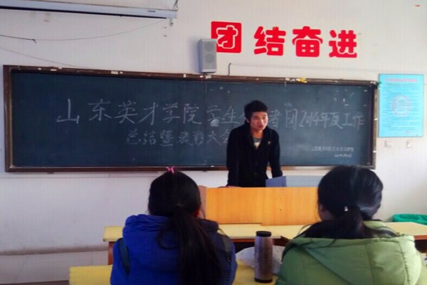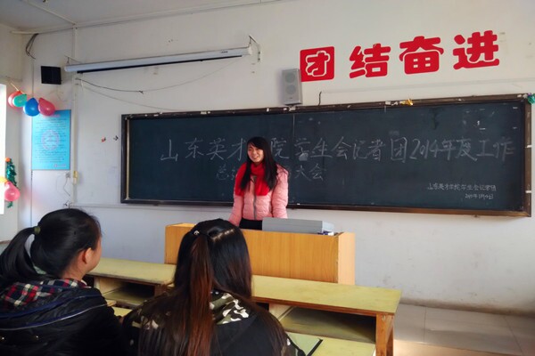 四位气质可嘉的主持人经过精彩的开场白之后,会议在雄伟庄严的《国歌》中拉开序幕。接着,校学生会记者团2013级骨干李欣欣作《山东英才学院学生会记者团2014年度工作总结》,她详细总结了记者团这一年来所取得的成就,并指出了其中的不足。随后,各组长作了《山东英才学院学生会记者团2014年度小组工作总结》,组长们饱含激情,将本组成员所做的工作娓娓道来,同时各组长表达了对记者团的无限热爱,也表达了对吴文龙部长的衷心感谢。之后,记者团11位候选人竞选“优秀干事”、“魅力干事”,她们展开了角逐,竞选呈词,铿锵有力,既对2014年的工作进行总结,又抒发了2015年的工作展望。秉承“公平、公正、公开”原则,经过投票、倡票环节,最终4名部员脱颖而出,荣获“记者团优秀干事”、“记者团魅力干事”。吴文龙部长和李欣欣学姐分别为荣获“记者团魅力干事”、“记者团优秀干事”颁发奖品,以资鼓励。会议近尾声,吴文龙部长作指示,他为荣获“记者团优秀干事”、“记者团魅力干事”的部员送上了诚挚的祝贺,号召全体部员向她们学习。吴文龙部长强调在记者团有默默付出的辛勤之人,有孜孜以求的人,散发着油墨的清香,跳动着青春的脉搏,有她们对生活的激情,更有她们对未来的渴望,并激励大家在新的一年继续扬鞭奋进,乘风破浪,再创佳绩!会议在《英才之歌》和全体人员合影留念中圆满结束。