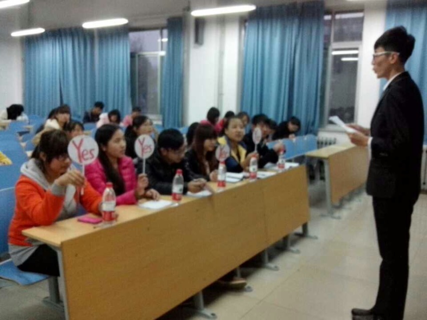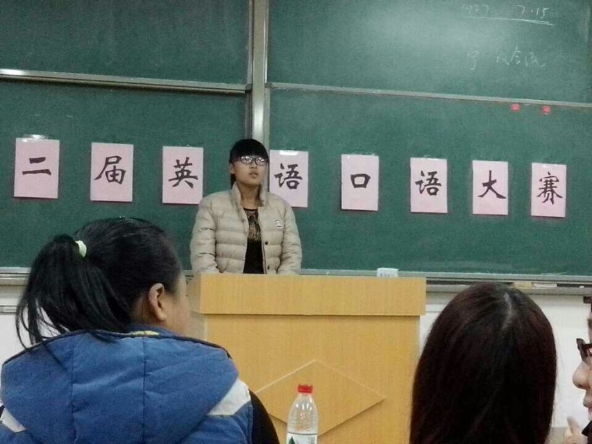 2013年月19日下午4点30,由社团联合会主办,英语俱乐部承办的英语口语大赛初赛下半场在教学楼B-106如期举行。出席本次比赛的评委有社团联合会副主席孙婷婷,宣传部副部长林淼,民族风社长秦向玉,特邀评委王卫民,英语俱乐部社长白娜。