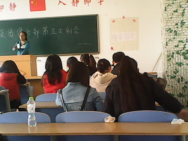 2013年10月22日中午11点40英语俱乐部在教学楼B楼311举办了每周一次的例会。此次例会由社长白娜主持。主要内容是提倡部员积极学习英语。