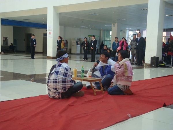 为弘扬优秀品德,活跃校园文化,2013年11月10号下午1点半,由北校区社团联合会主办,各社团承办的第五届校园科技文化艺术节相声小品大赛在图书馆一楼火热开赛。本次大赛非常荣幸邀请到社联主席王长进,学生会副主席吴宙,还有梦之翼社长孙婷婷和艺灵社长张春宝担任此次评委。这次大赛秉承“诚信,合作”的和谐理念,以节目来展示社团的魅力。