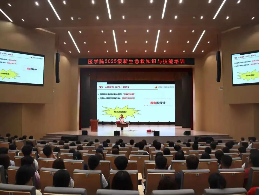 为切实增强新生安全意识与自救互救能力,普及应急救护知识,提升校园整体应急水平,我校面向2025级全体新生组织开展了一场内容丰富、实用性强的急救知识与技能培训活动。活动邀请医学院专业教师现场讲授心肺复苏、AED使用、气道异物梗阻处理及创伤包扎等实用技能,并通过模拟操作强化实践能力。同学们积极参与演练,初步掌握了基本救护方法。此次活动是学校推进“平安校园”建设的重要举措,有效增强了新生的安全意识和自救互救能力,弘扬了“人人学急救,急救为人人”的生命关怀理念。