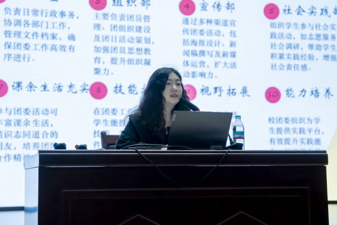 校团委主任周兰老师,学生工作处李哲老师分别在南北校区详细介绍了校级学生组织与学生社团,涵盖思想政治类、学术科技类、志愿公益类、自律互助、创新创业类、文化体育类、其他类等各领域。她们指出,学生组织和社团是大学生活的重要组成部分,为同学们锻炼能力、拓展交际、发现自我、展示才华提供了宝贵平台。期待2025级同学踊跃加入,绽放青春、收获成长。