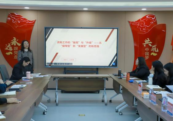 王潇潇老师在资助专项工作汇报分享中讲到要守护原则与底线,面对资助和学生日常管理工作,要做到“合理共情,理性处理”,坚守工作原则,保持心态的平和与稳定;