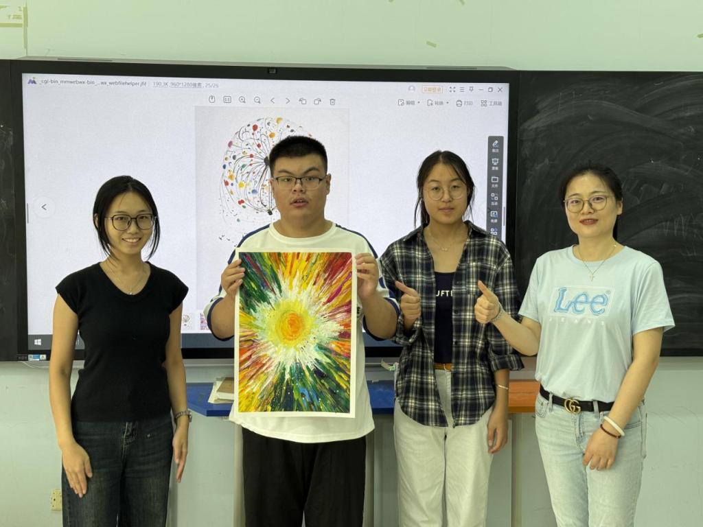 志愿者本科学前教育专业本科2306班高金苗同学分享道:“陪伴孩子创作的过程让我感受到艺术的纯粹和力量。他的每一笔都是真诚的心声,让我更加坚定了服务特殊教育的信念。”董昌昊同学在展示作品时开心地说:“我喜欢画画,画画让我很快乐!”简短的表达,却透露出发自内心的满足与喜悦。