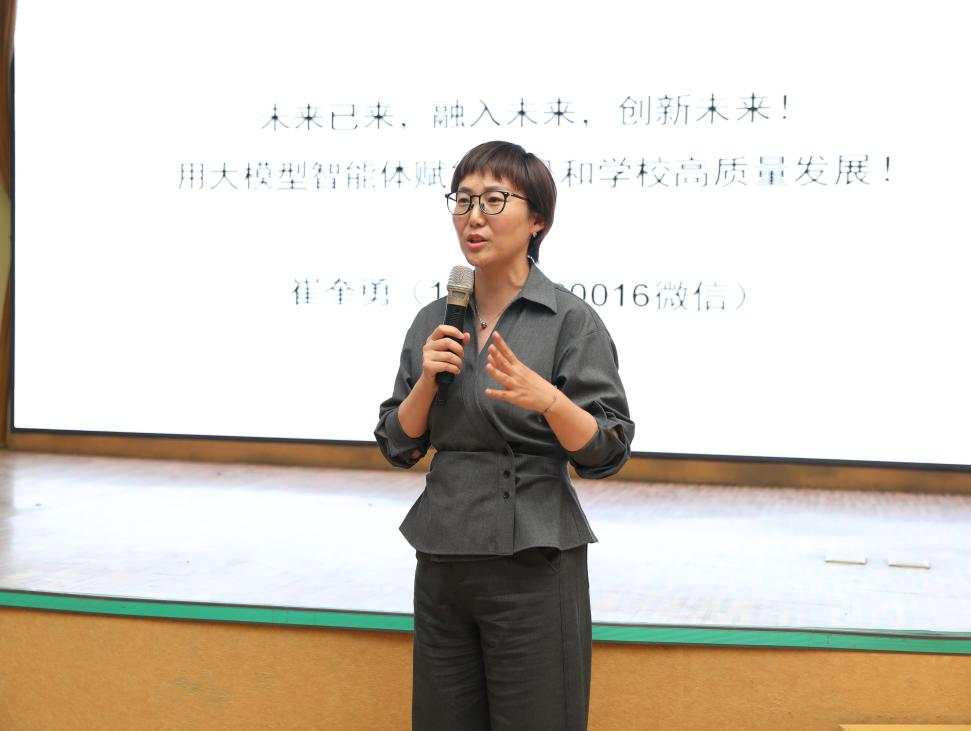 讲座伊始,崔校长以宏观视角阐述了人工智能在当今教育领域引发的深刻变革,强调其在推动教育创新、提升教学质量、优化科研流程及提高行政效率等方面的巨大潜力。并结合KIMI、文心一言、豆包等工具的实际案例,解析其赋能精准教学、高效科研与智慧行政的操作路径,同时探讨技术伦理与未来“人机协同”的平衡发展,为教育数字化转提供兼具创新性与可行性的实践方向。最后崔校结合教科研发展和教师个人学历发展规划,鼓励各位教师同时关注个人成长。