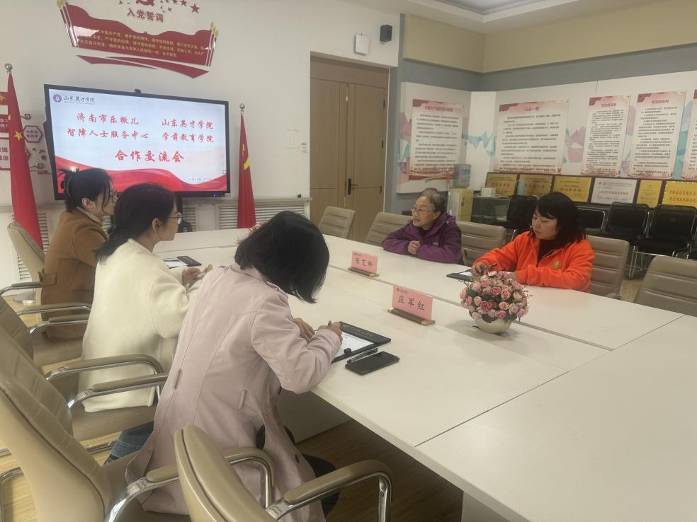 为拓展学前教育专业边界,深化应用型人才培养,2025年10月23日,山东英才学院学前教育学院与济南市乐橄儿智障服务中心在学院会议室举行合作洽谈会。学前教育学院教学副院长任姗、基础理论教研室主任庄军红、实践技能教研室骨干教师杨春凤,与济南市乐橄儿智障服务中心院长张艾玲共同出席了会议。双方经过深入务实的交流,在共建实践基地、课程开发与志愿服务等领域达成多项共识。