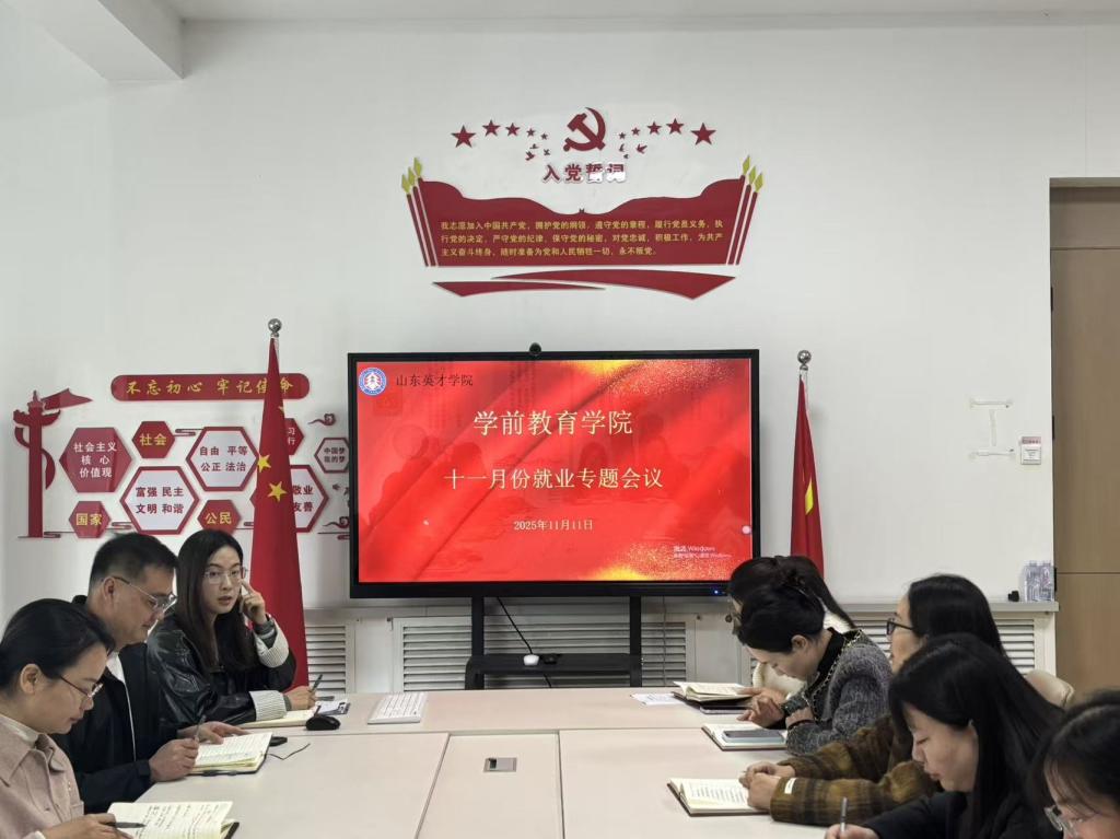 为精准推进毕业生就业工作,着力提升就业质量与岗位匹配度,2025年11月11日,山东英才学院学前教育学院召开十一月就业专题会议。学院领导与毕业班辅导员齐聚一堂,围绕就业工作重点任务展开深入研讨,并进行系统部署。
