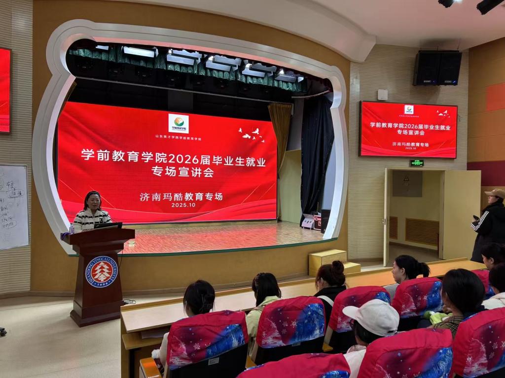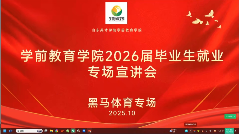 为进一步拓宽2026届学前教育专业毕业生就业渠道,精准对接行业优质岗位资源,帮助学子明晰职业发展方向,2025年10月28日至29日,山东英才学院学前教育学院精心策划、有序组织,举办黑马体育线上专场宣讲会与济南玛酷教育线下专场宣讲会。两场宣讲会分别聚焦青少年体育教育、少儿科创教育两大领域,为学子带来多元职业选择,搭建起校企协同育人与就业对接的优质桥梁,切实为毕业生高质量就业注入新活力。