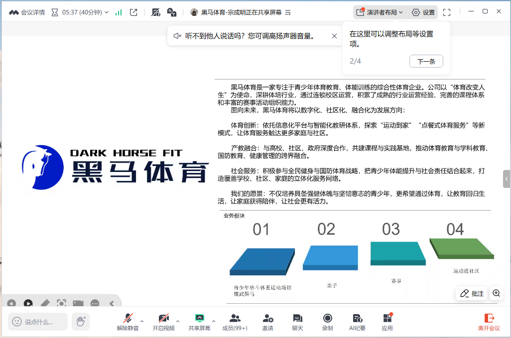 10月28日,黑马体育线上专场宣讲会如期开展,学前教育学院2026届相关专业毕业生通过线上会议平台积极参与。宣讲过程中,企业代表宗成明通过共享屏幕,从企业发展历程、核心业务板块、未来战略布局及岗位招聘需求等方面展开详细介绍。同时,黑马体育在济南、德州等地设有分公司,能充分满足毕业生“属地就业”的需求,降低就业通勤成本,提升职业归属感。