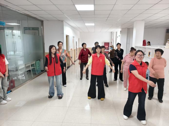 实践团队针对老年群体健康需求,现场开展医疗保健操教学。成员们通过分解动作演示,指导老人掌握预防关节退化的基础保健动作。