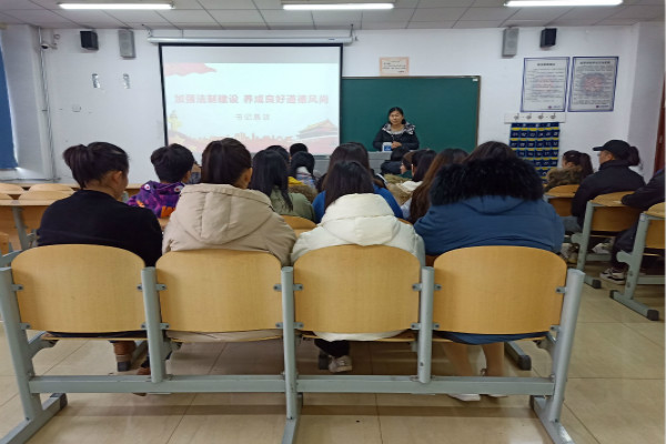 为了进一步践行法制精神,提高公民法律意识,让大家知法守法懂法,养成一个良好的道德风尚,做一名合格的知法人,山东英才学院医学院于2018年12月21日11:40在2015教室开展了“加强法制建设,养成良好道德风尚”的书记恳谈。此次恳谈的主讲人是医学院基层团委书记杨忠艳,2018级各班团支书、组织委员、宣传委员参加。