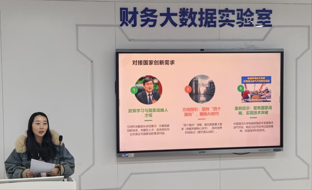 11月18日,周玉燕老师将此次培训心得结合即将申报的驻济高校乡村振兴创新创业大赛进行了方向解读与经验分享,并将培训中所学的盐碱地农业创新理念、产教融合模式展开了介绍。