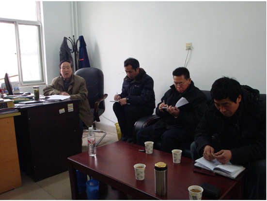 2012年2月21日上午,在总务处处长办公室召开处室工作会议,参会人员有籍处长、孙处长、尹处长以及各中心主任。