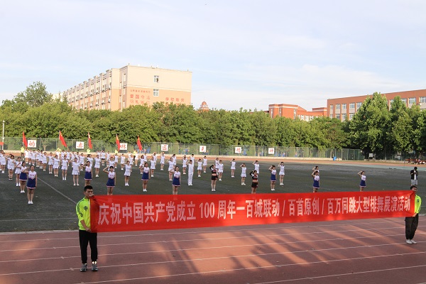 为庆祝中国共产党成立100周年,切实增强党史学习教育成效,5月25日至6月6日,国家体育总局体操运动管理中心开展了首届全国校园排舞大课间网络展示大赛。我校积极响应号召,于6月3日在南校区田径场举行大型排舞展演活动。在公共教学部教师的组织和指导下,来自学前教育学院、现代音乐舞蹈学院、工学院的262名学生参加展演,用热情的舞蹈表达对中国共产党的热爱和赞美。
