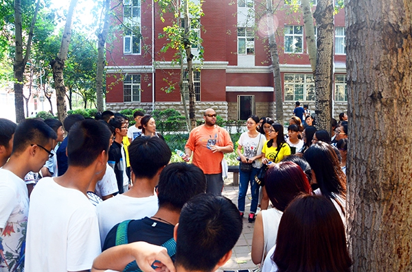 9月8日,为了加强第二课堂建设,丰富学生课余生活,配合大学教育并实现形式创新,提升大学生对外语学习的热情,让同学们在轻松愉快的氛围中学习外语,由外国语与国际交流学院基层团委英语俱乐部组织的外语角活动,在南校区信息楼后小树林、北校区图书馆大厅同时举行。