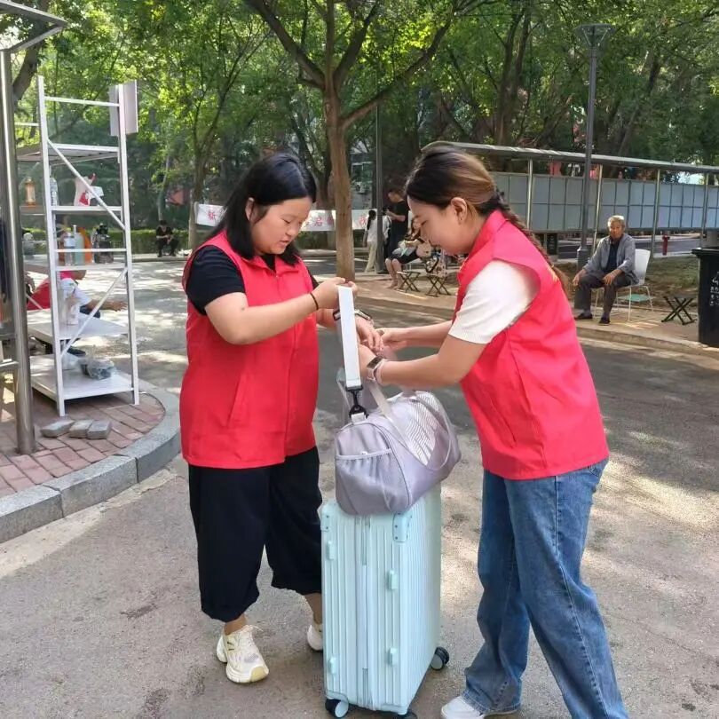 志愿者的穿梭奔忙 行囊安置的妥帖