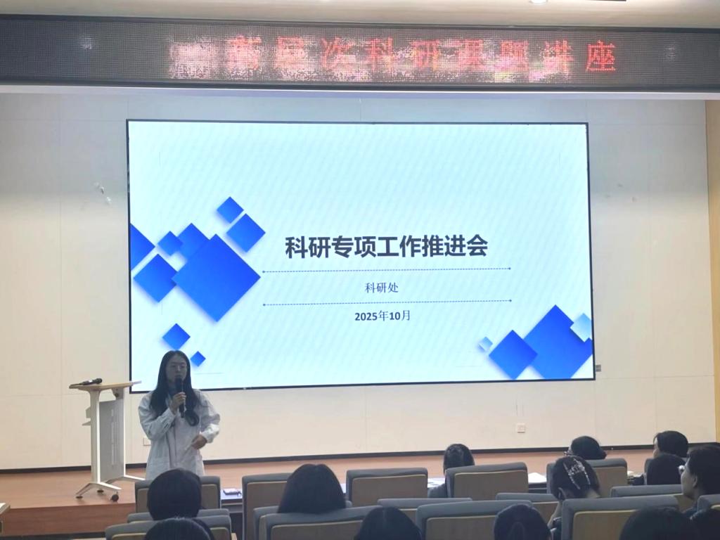为推动医学科研与产业需求深度融合、提升科研人员成果转化能力,10月21日,医学院举办了横向课题科研讲座。讲座特邀科研处处长朱美主讲,医学院全体教师参会,现场交流氛围热烈。